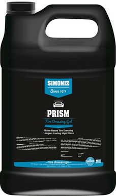 • Have you ever applied a water-based dressing only to have it run down the sidewall of the tire or off of the trim and onto your paint? That won’t ever happen with Simoniz® Prism. This gel-style dressing features all of the good stuff. It has high gloss, outstanding durability, UV protection, and it will not run or drip. This thick, highly viscous water-based surface dressing goes on evenly and stays in place to shine your tires and restore your faded bumpers, wheel openings, body side moldings, and any other unpainted rubber, plastic, or vinyl trim. Water-based surface dressings don't last quite as long as solvent-based dressing but they are easier to work with and feature a more natural shine. They can be used on wet or dry exterior and interior surfaces and work great on engine compartment surfaces. They can easily be cleaned off of your garage floor or driveway if spilled and will not stain.